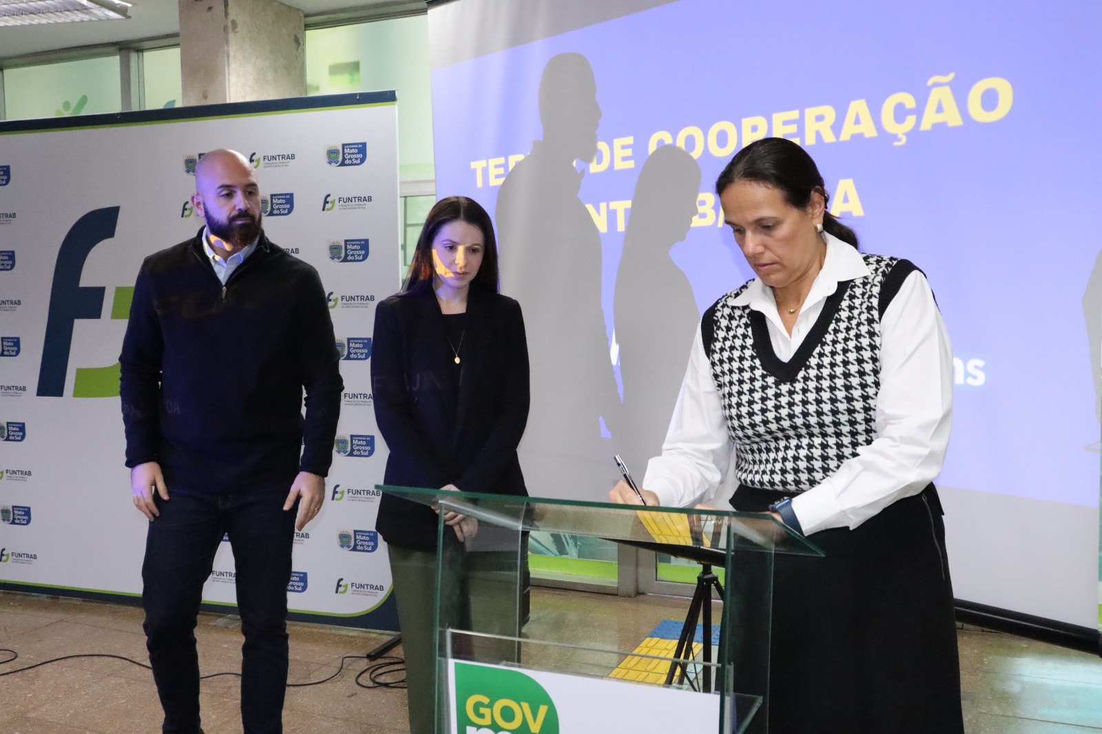 A Fundação do Trabalho de Mato Grosso do Sul (Funtrab) e o Instituto PROA formalizaram, nesta terça (12/08), na sede da Funtrab, a assinatura do Acordo de Cooperação Técnica que marca uma parceria inédita entre as duas instituições. O objetivo é ampliar as oportunidades de qualificação profissional e inserção no mercado de trabalho para jovens entre 17 e 22 anos que concluíram ou estão cursando o 3º ano do ensino médio em escola pública.