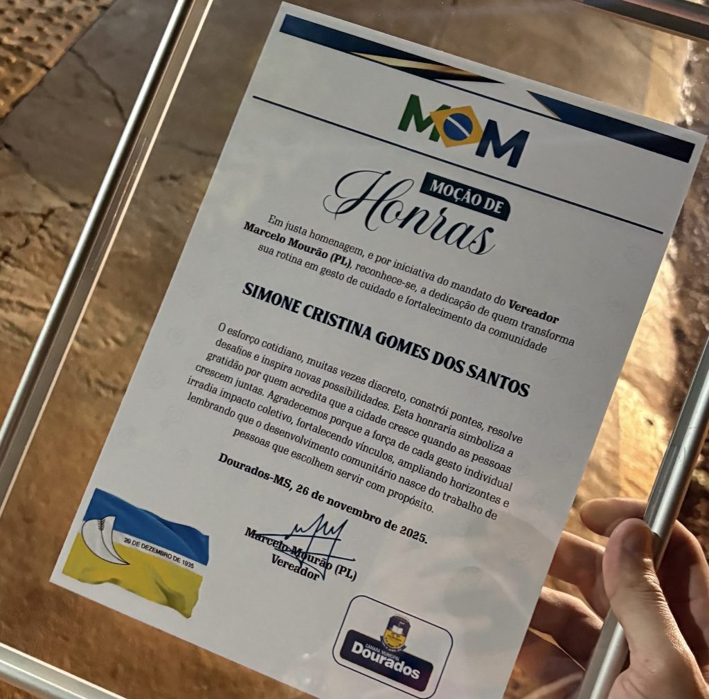 A Câmara Municipal de Dourados realizou, na noite desta quarta-feira (26/11), uma sessão solene dedicada à entrega de homenagens e moções a personalidades e entidades que se destacam por suas contribuições ao município. O plenário Weimar Gonçalves Torres ficou lotado para celebrar o trabalho de profissionais que, em diferentes áreas, ajudam a fortalecer a comunidade douradense.